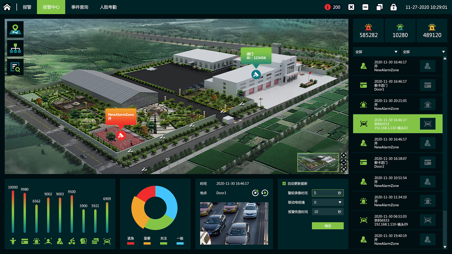 支持物联告警、人脸检测、车辆检测、校园周界、紧急求助、高频陌生人等智能告警数据等接入与展示,提供重点人员管控、报警联动、人员考勤、学生轨迹还原、车辆管理等业务能力,同时对报警进行处置复核、检索回溯等闭环业务