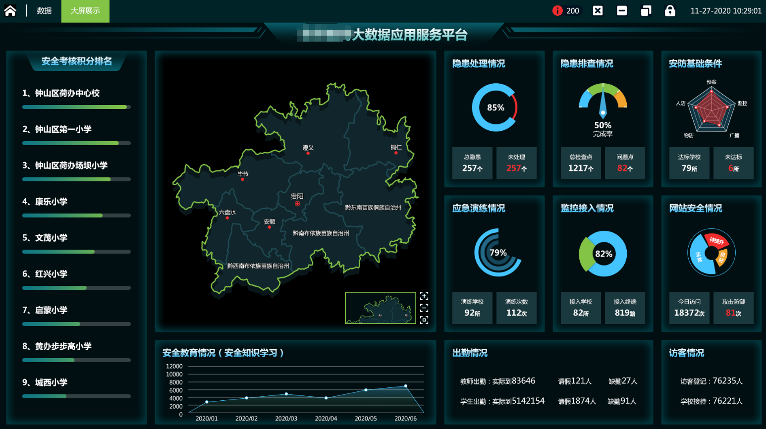 县市级专项督查标准、发布检查任务,检查人员进行逐项问题记录与排查,检查结果自动上报、统计、汇总。督查人员还可通过学校监控视频的查看、学校安全台账数据的查阅、学校安全问题的综合分析。