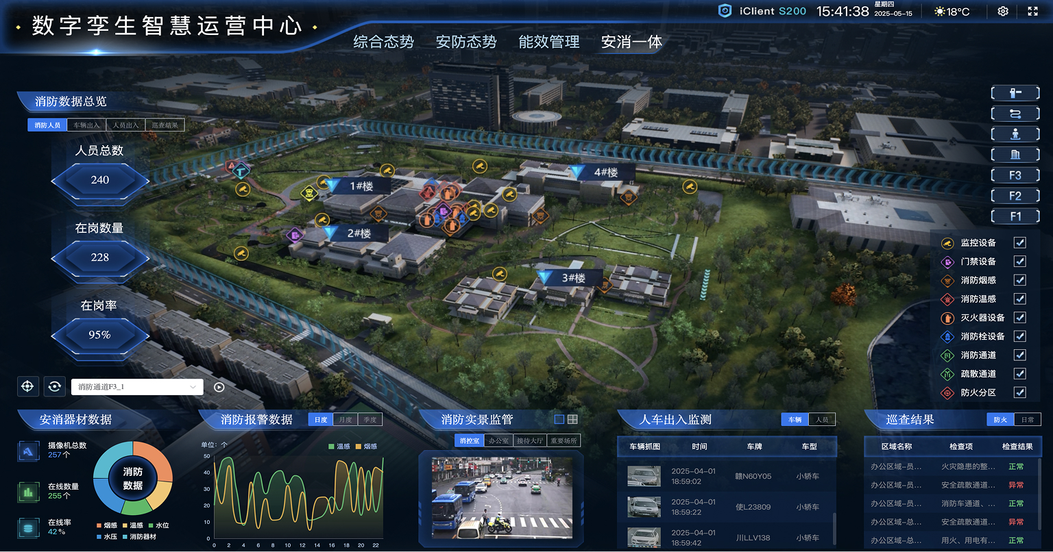 不同类型、多种型号消防设施集约化管理,同时消防数据与安防数据联动,解决消防数据孤单,提升消防告警准确率