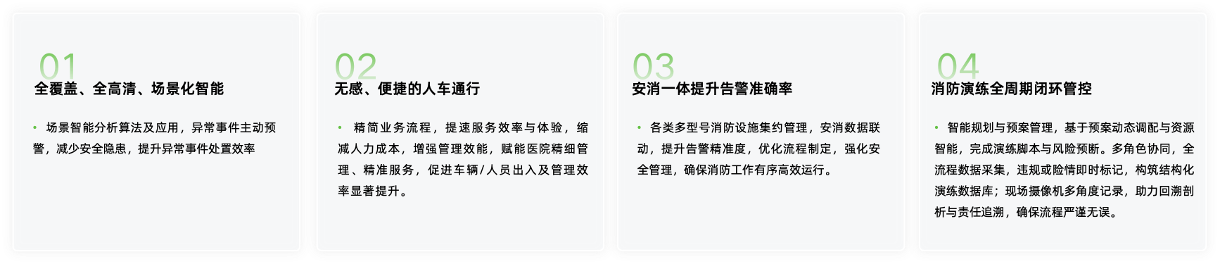 通过集成视频、智能、安防设施、地图数据等,提供人、车、事件场景化应用,助力医院建立全域安防管理管理体系