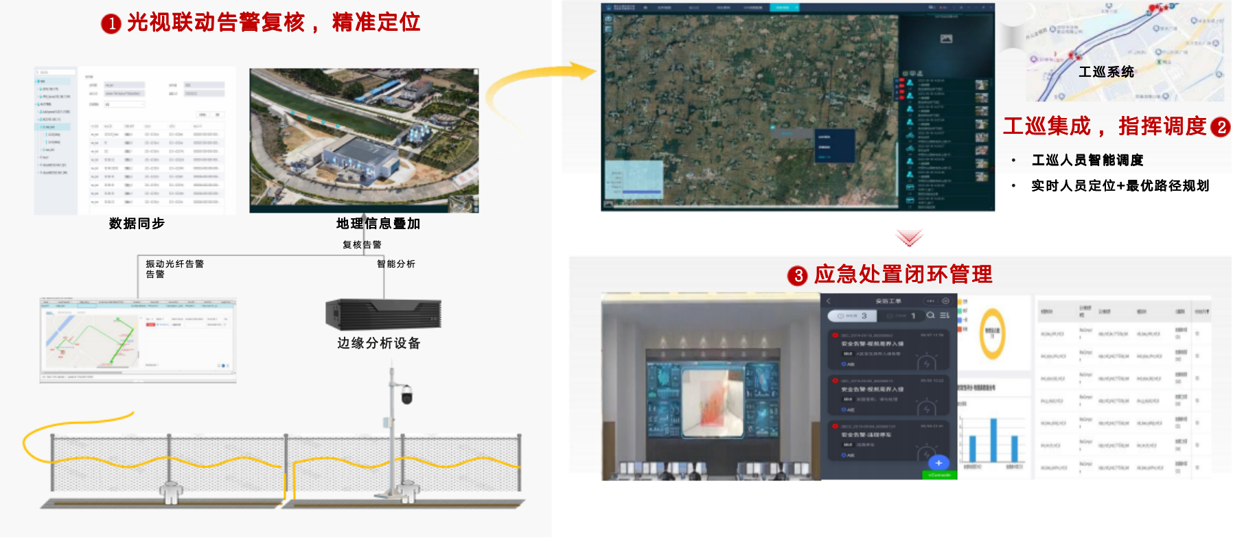 针对电厂周界安全 , 系统基于振动光纤与智能视频分析构建的周界防范系统融合多维感知、 智能算法与多级联动机制 ,构建全天候、 低误报的防护体系 ,通过周界感知精准定位、 工 巡资源动态调度与闭环管理机制 ,将异常事件平均处置时间缩短至10分钟内 ,显著提升电厂周界应急响应效率。