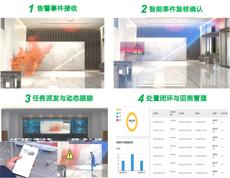 基于iSSP平台构建“巡查-预警-处置-复核”闭环体系,实现事件自动派单、进度跟踪和电子存证。从报警到处置响应时间缩短至3分钟内,
